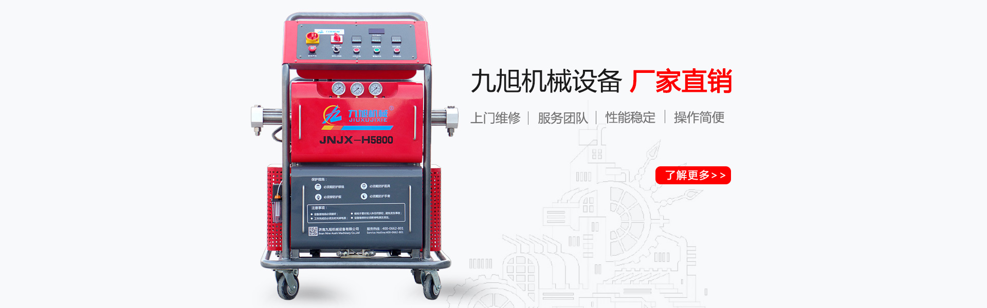 山東九旭機(jī)械科技有限公司歷經(jīng)十幾年的發(fā)展,已成長(zhǎng)為聚氨酯設(shè)備行業(yè)頗具實(shí)力的設(shè)備制造廠(chǎng)家之一。企業(yè)主要產(chǎn)品:聚氨酯噴涂機(jī)、聚氨酯發(fā)泡機(jī)、聚氨酯澆注機(jī)、聚脲噴涂機(jī)等,關(guān)于設(shè)備配件(聚氨酯高壓噴槍、槍嘴、加熱管道、料塊、摩擦副、增壓泵、混合式、提料泵等)也是堅(jiān)持最好的質(zhì)量服務(wù)用戶(hù),并承接:外墻保溫、冷庫(kù)保溫發(fā)泡等工程...